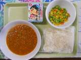 7月12日(金)カレーライス・とうもろこし・牛乳 今日の1時間目に、家庭科室で...