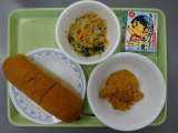 鶏肉の大豆フレーク揚げ・五目ビーフン・くろパン・牛乳 給食委員会の子どもたち...