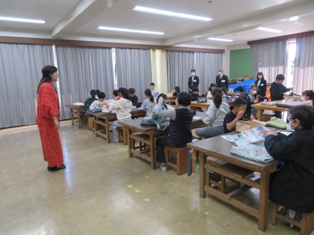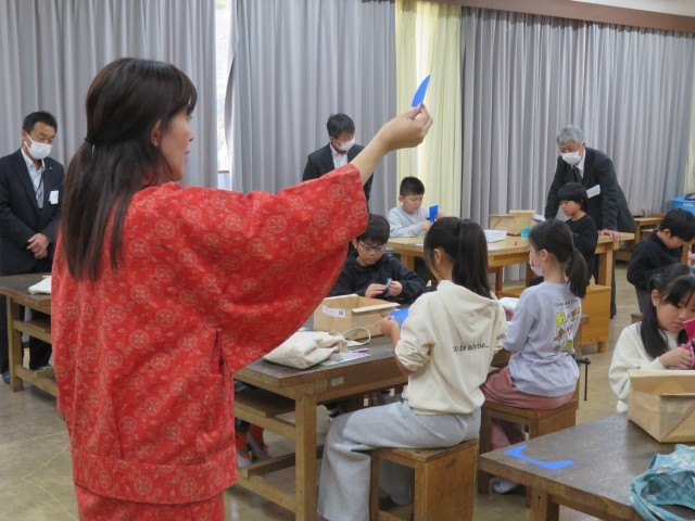 切り絵作家の水口さんのご指導のもと、ほうとく級と4年生の各クラスで切り絵に挑戦しました。