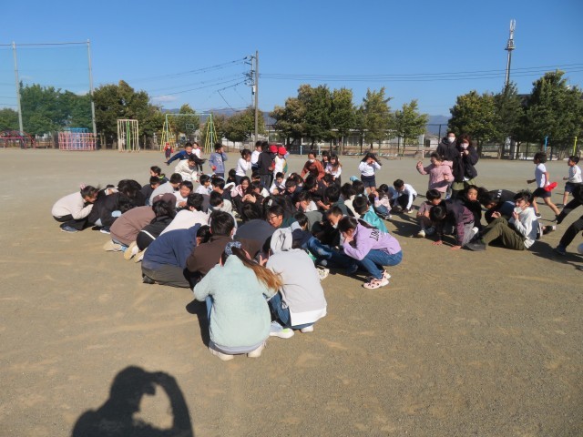 運動場では、高学年の児童が「真ん中に行くよ」と声を出して集まる姿が見られました。