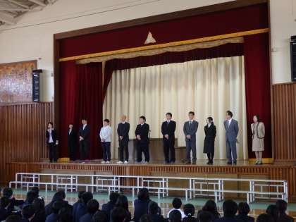 校庭の桜も満開までもう一歩、たくさんのつぼみを膨らませ、皆さんの進級を応援しています。先生方の紹介、校歌斉唱では全体の牽引役として3年代表生徒が前に出て歌いました。午後には、174名の新入生を迎える入学式があります。生活規律だけでなく学習面でも、学校生活の手本として「先輩を見習え」と言える2・3年生になることを期待しています。その意味でも学業とスポーツにこれまで以上に専念し、今年50年を迎える本校の歴史と伝統をしっかり次の世代へとつなげていけることを願っています。