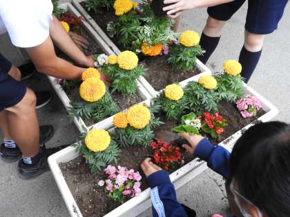 今年も苗は、県立吉田島高等学校の生徒さんが育てたものを購入しました。マリーゴールドとベゴニアでとってもしっかりとした苗でした。少しサービスしていただき、多めに手に入れることができました。