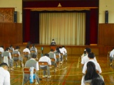 3年生進路説明会を実施しています。コロナウィルス感染症拡大防止のために3回に分けて実施しています。