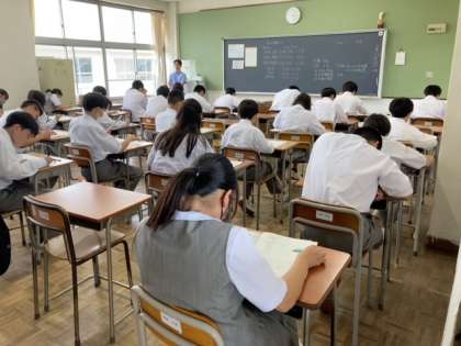 今日から2日間、第1回定期テストです。1年生にとっては入学後初めてのテスト、教室は緊張感に包まれていました。明日も頑張ってください!