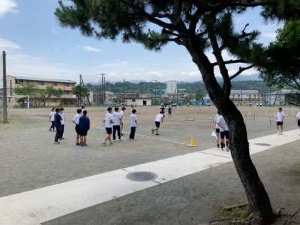 上の写真は体育のハードルの授業。思ったより気温が上がらず良かったです。下は音楽の合唱の授業です。爽やかな歌声が響いていました。音楽室はエアコンがあります。