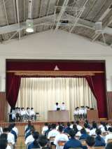 前期終業式を行いました。成績票を渡しています。10月7日 金曜日