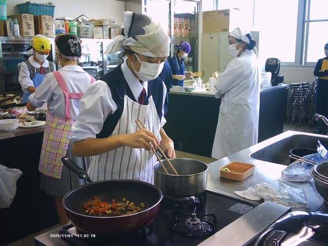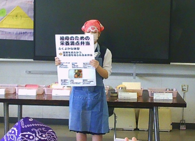 美術・生活造形部から「あなたのためのおべんとうコンクール」に3年生2名が出場しました。自分で考えたお弁当を準備・片付けを含め100分間で実際に調理し、プレゼンテーションを行いました。初めての調理室で、たくさんの審査員の先生に囲まれて、とても緊張していましたが、最後まで諦めることなく調理し、練習の成果を発揮することができました。