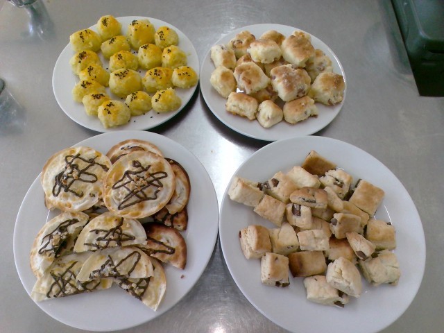 今回は「ひとくちスイートポテト」「ぎょうざの皮でつくるチョコバナナパイ」「ひとくちスコーン」から1つを選び調理しました。