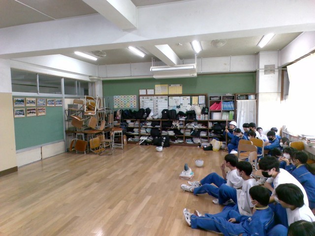 不審者が学校に侵入してきたことを想定して、もしものときに教室内でどのような行動を取るのか考えました。