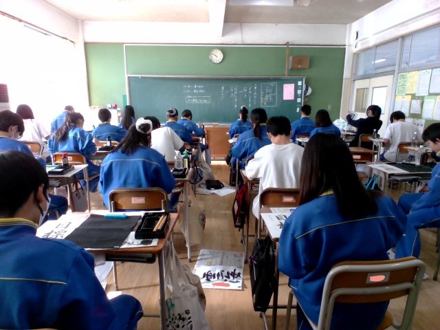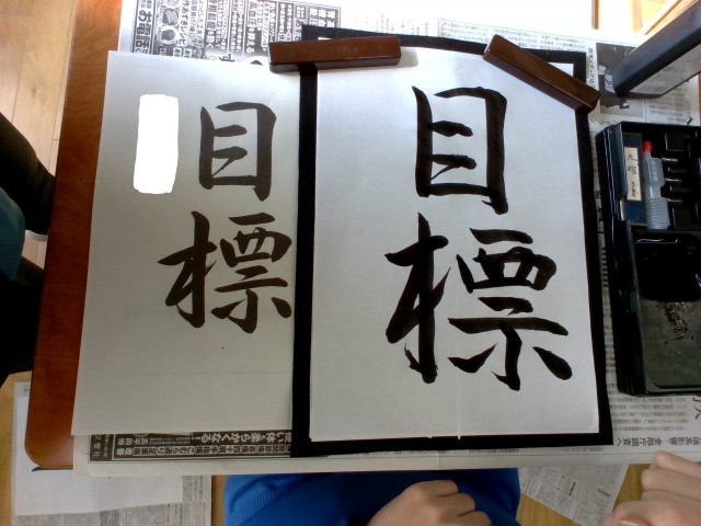 2年生の国語の授業では、冬休み課題の書き初めの練習をしています。実際に課題として提出するときには、条幅紙に「新たな目標」を行書で書きますが、今日はその中でも「目標」という言葉に絞り、半紙に書く練習をしました。みんなお手本をしっかり観察しながら集中して書くことができていました!