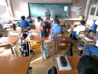 中学校区の三校五園が合同で、非常事態の際の引き渡しの手順や、兄弟姉妹が2校(園)以上に在籍する御家庭の引き取りの順番を確認しました。1学年の引き取りの様子です。
