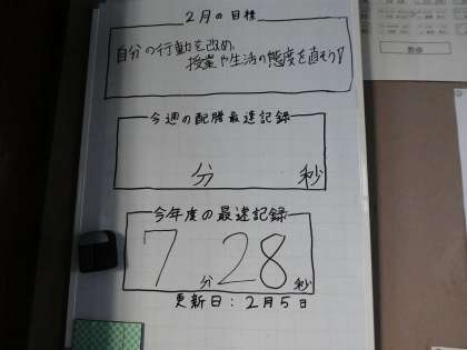 2月も半ばにさしかかります。あるクラスには給食の配膳時間が記録されていました。「記録に挑戦」どんなことにも挑戦する価値があると思います。朝、空を見上げ、富士を眺めると、謙虚な気持ちになりました。