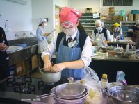 調理室では、2年生がリンゴの皮むきのテストに臨んでいました。3分間での作業となります。「上手下手ではなく丁寧に進めること」がリンゴへの思いやりのように感じました。冷え込みの厳しい教室ですが熱気に満ちていました。スクボラ様のご協力に感謝いたします。