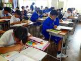 6校時、3年生は修学旅行に向けての準備、1,2年生は昨日の校外学習のまとめに取り...