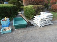 ふれあいファームでは、4,5組がダイコンやカブを栽培しています。特別教室へのエアコン設置工事のためホースを伸ばすにもひと苦労あります。それぞれに役割分担をしてチームワークよく、水やりをしていました。