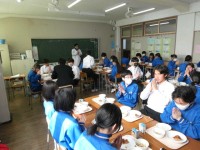 本日の献立は「麦入りごはん、鶏の香味焼き、塩肉じゃが」です。今週は全国学校給食週間となっています。塩肉じゃがはとても美味しく、はじめての味でした。写真は2年生の風景です。手を合わせて「いただきます!」...