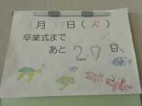 3年生の教室の日めくりカレンダーです。1月27日(火)は卒業式まで27日ということで、偶然の一致「27」に出会えました。カレンダーには海の生き物が楽し気に泳いでいました…。