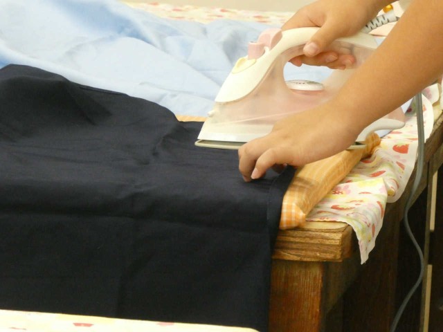 きれいな色の布がエプロンとして命を吹き込まれいくようです。針と糸を使っての手作業は頭脳を刺激し、思考力を高めることでしょう。自作のエプロンを身に着けて作る料理までが想像されます。