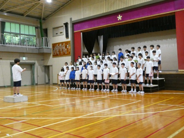 5校時、2年生は心をひとつにして来週の発表会に向けてのリハーサルに臨みました。全員が整然とした態度で「学校の柱」としての存在感を示していました。歌声に定評の高い2年生、本番でも実力を発揮してくれることでしょう。