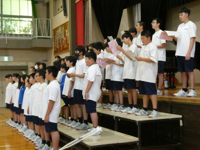 4校時、来週の発表会に向けリハーサルの臨む1年生の清々しい姿に出会うことができました。一生懸命に声と心を合わせようとする姿に中学生としての大きな成長を感じました。