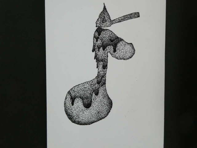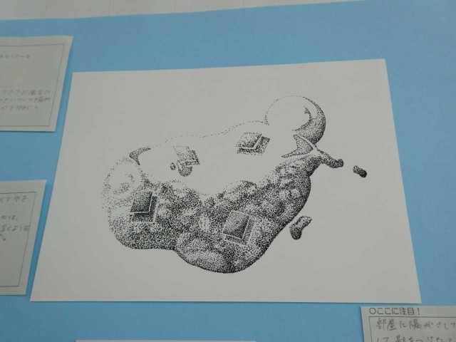 細かい点で描かれている作品です。「自分の心模様」が表現されていて、仲間からの感想が添えられています。見ていると自然に時間が過ぎていくような雰囲気です。