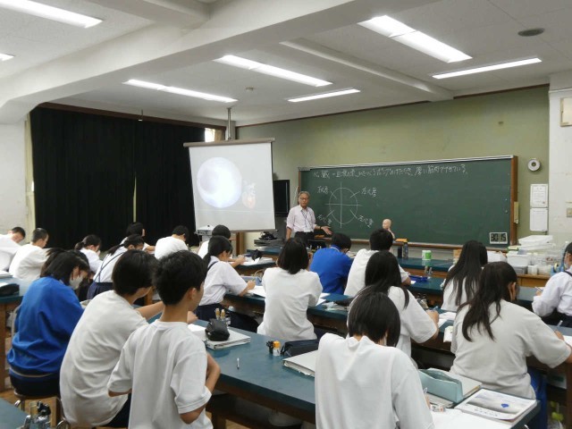 動物の心臓について、映像や人体モデルを用いて学びを深めています。「二心房二心室の構造は鳥類と哺乳類」とあります。鳥たちと仲間なのか、と思うと不思議な気持ちになりました。とれも理解しやすい授業の流れです。