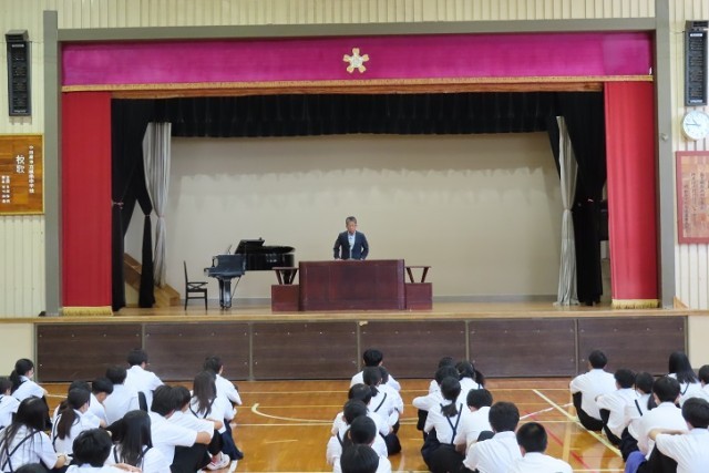 前期と後期の節目にあたり、前後期式を行いました。校長先生から「城南中学校だからこそ醸し出された雰囲気の合唱」「振り返りの大切さ」についてお話がありました。3連休が明けると後期の中学校生活が始まります。1年生は中学校生活の残り5/6、2年生は中学校生活の残り3/6、3年生は中学校生活の残り1/6を充実させたものにしましょう。