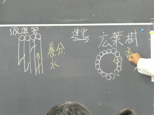 「木材の名称」がテーマです。針葉樹と広葉樹では広葉樹の方が重い。仮道管、道管、大阪万博の大屋根リング(一周2K)、国立競技場…、授業内容は多岐にわたり、生徒の興味関心が高まります。「時間をかけて生長する広葉樹は固くて強い」人にも同じことが言えそうです。