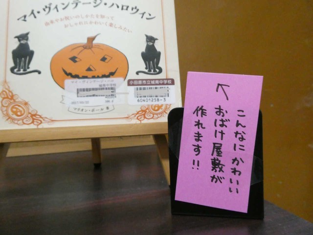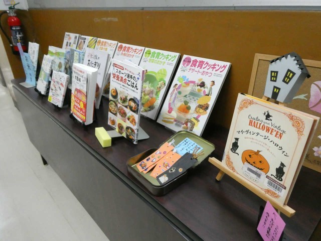 図書室展示コーナーに「明るいお化け屋敷」が登場しています。まだ中を見ていませんが、ハロウィンの季節が到来していることを実感します。