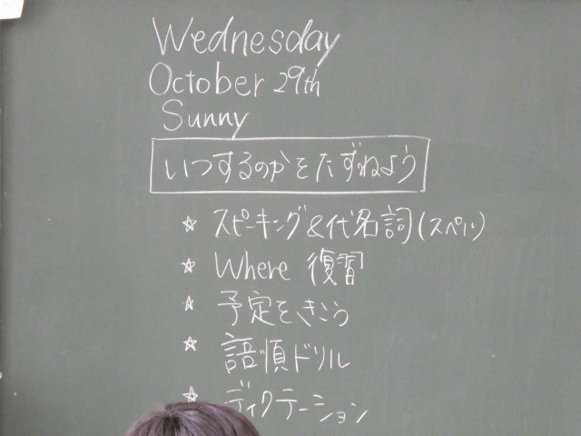 校内研究で授業公開がありました。指導教諭は英語で生徒に話しかけます。生徒も英語に親しみを覚え、英語で答えます。スライドと板書が授業内容をより明確にし、本校の研究テーマ「支援の充実」が具体的に展開されていました。