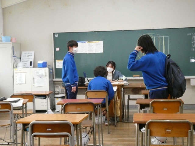 1029 放課後の風景 公開日 2025/10/29 更新日 2025/10/29 できごと テスト一週間前になりました。各教室では放課後学習会が開かれ、教科の先生がより丁寧に説明をしています。先生と生徒が仲良く勉強に取り組む姿は学校の原風景と言えるでしょう。 いいね(0)