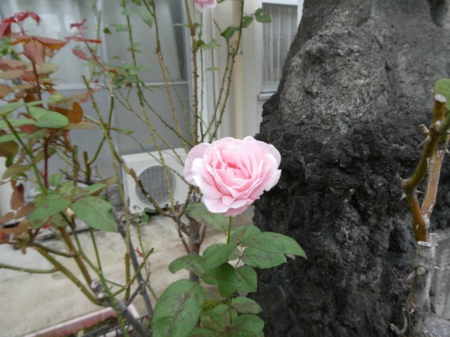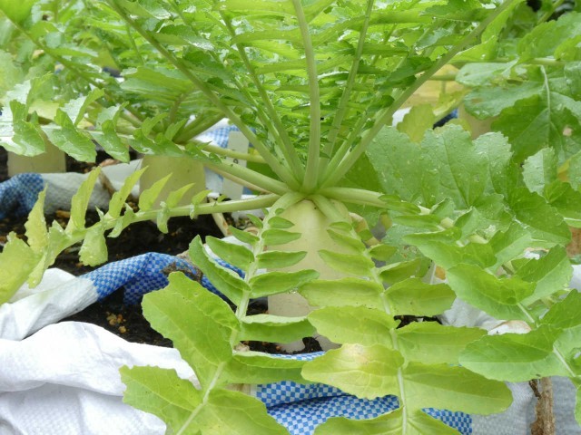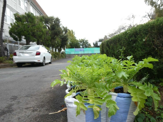 テスト二日目の朝です。2年生から水をもらったダイコンたちは一層生き生きと力強さを増しています。何気なく咲くバラは、言葉少なく生徒にエールを贈っていました。