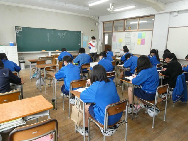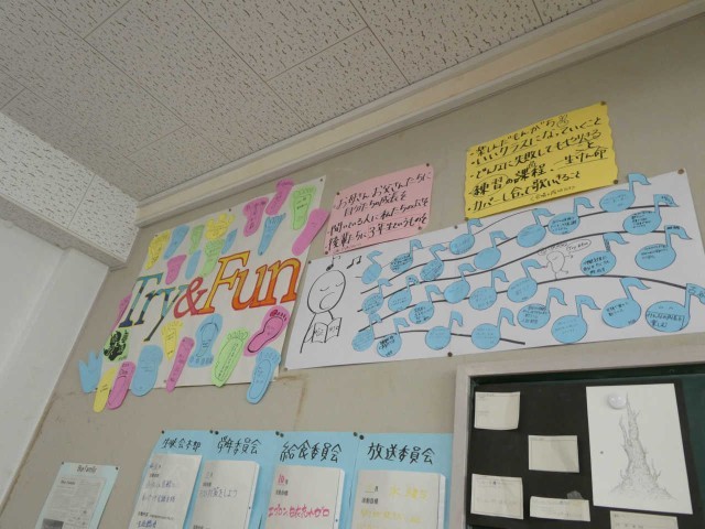 プリントに一人ひとりが集中しています。その風景をクラスの歴史を物語る掲示物がやさしく見守っています。3年生の足跡が伝統の「証」となることでしょう。