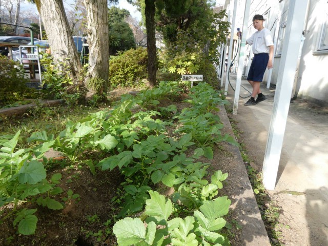ふれあいファームではかぶやダイコンの栽培が行われています。雑草を抜いたり、水をあげたり、こまめに面倒を見ることが生長の助けとなります。人の教育にも全く当てはまります。