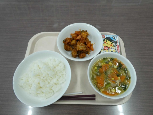 1121 給食Time 公開日 2025/11/21 更新日 2025/11/21 できごと 本日の献立は「ソイ酢豚、コーンのスープ」です。週末のメニューは疲れ気味の心身をほどよく癒してくれます。 いいね(0)