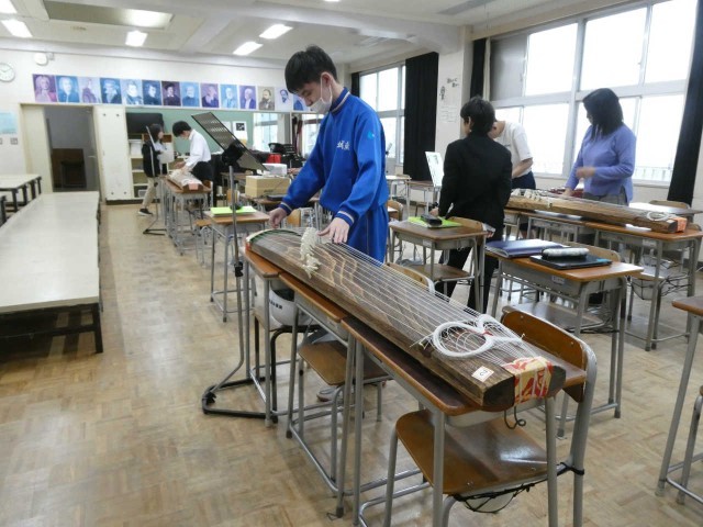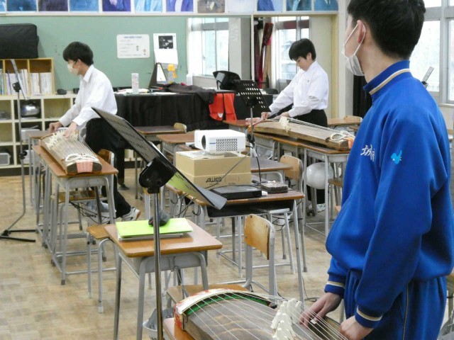 音楽室からは箏の美しい音色が聞こえてきます。中には楽譜を暗記して演奏に臨んでいる生徒もいます。あれだけきれいな音を弾き出せる技は凄いと思います。練習と心の持ち方がしっかりしているからなのでしょう。