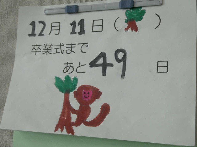 卒業式まで49日となりました。木曜日のところに「木」が描かれていて、ホッとなりました!