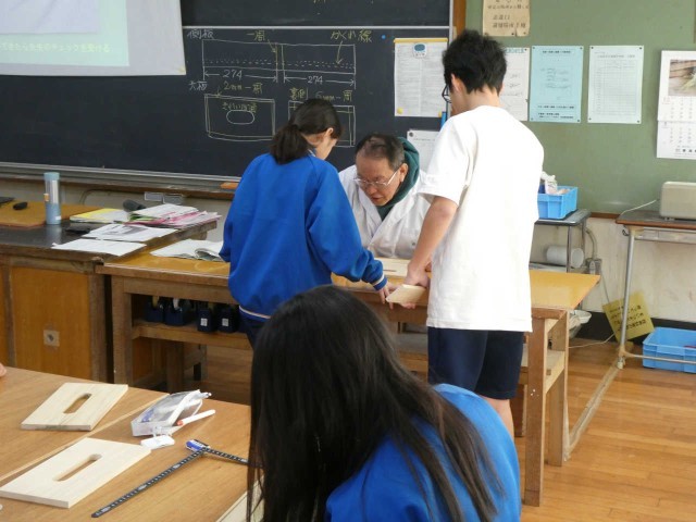 一工程ごとに指導教諭が一人ひとりの作業内容を確認します。その対話の声を木材が聞いているようです。毎年全員がきれいな作品を完成することができるのは材料や道具に思いを込めているからなのでしょう。