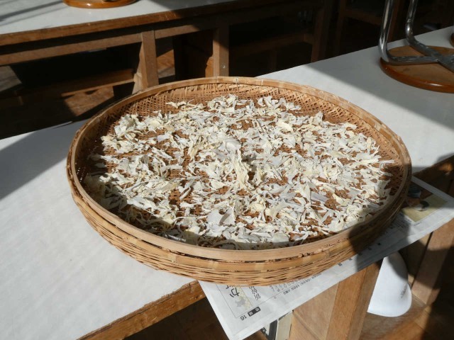 ふれあいファームで収穫されたダイコンで、おでんが美味しそうに完成しました。窓側では切り干しダイコンが太陽の陽をあびています。「ダイコンは捨てる部分がない」そうで、栽培から調理実習を通しSDGSが体感できる授業形態です。