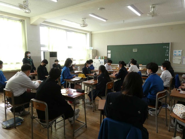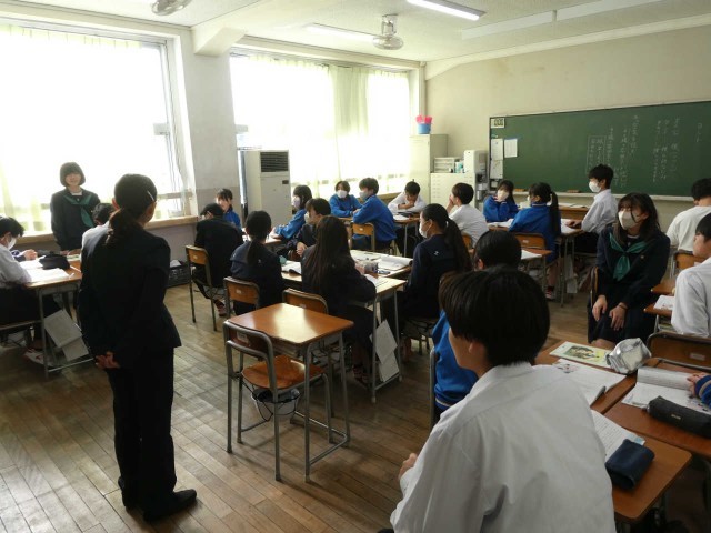 2年生、3年生の5校時道徳の授業風景です。発言者の方に体を向ける誠実な姿が教室内にあります。「他者の考えに耳を傾ける」一番大切な事柄が授業の中で醸成されていました。1年生の掲示物も心に留まりました。