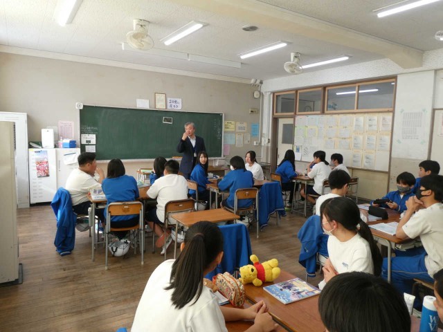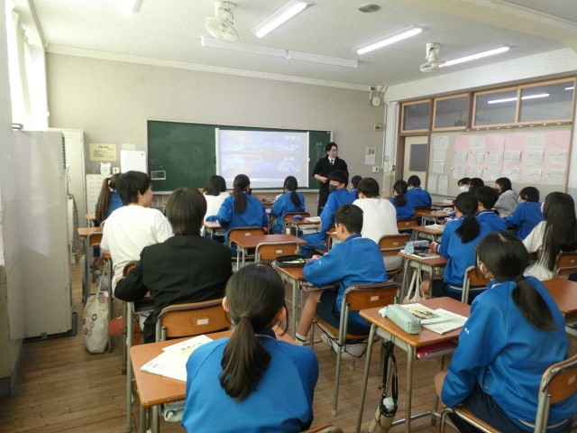 月曜日5校時は道徳です。写真は2年生、1年生の授業風景です。いろいろな先生が道徳の授業を展開しています。1年生では教頭先生がこの時間を担当していました。生徒たちは興味津々の表情です。