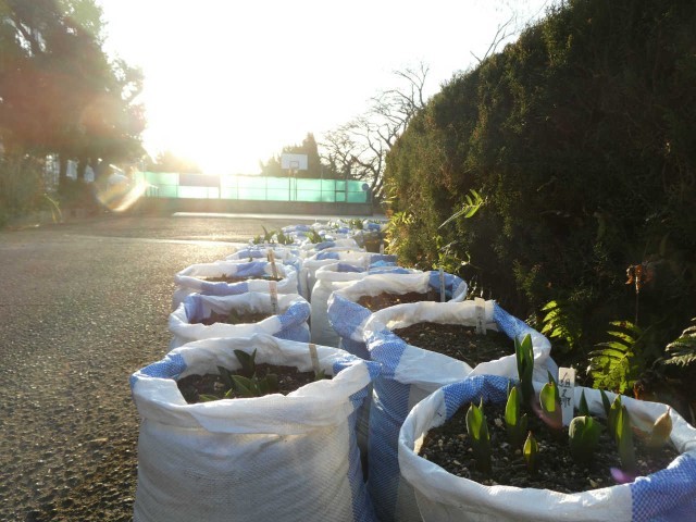 車の外気温計が-4℃を示していました。冬らしい冷たい朝です。チューリップたちが朝日を受ける光景を見ると、少し希望が見えてきます。睦月最後の金曜日、あせらずゆっくりいきたいところです。