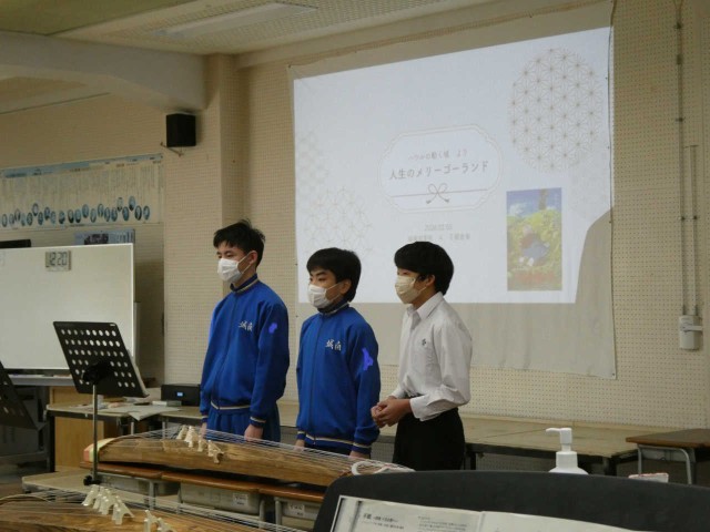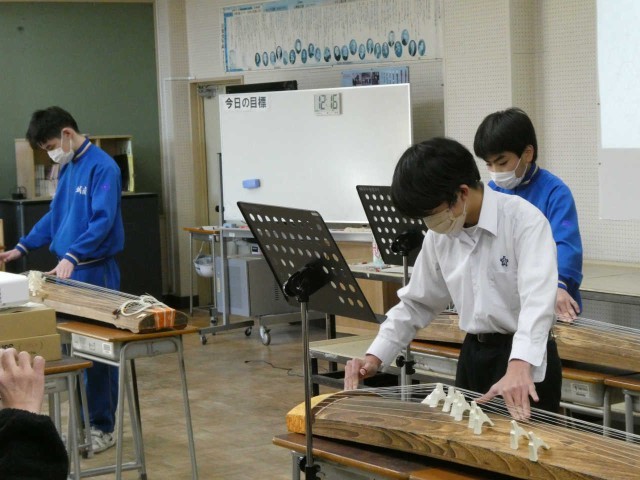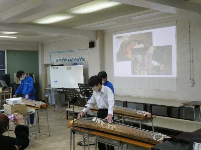 3校時、音楽室では「4,5組、お箏のコンサート」が保護者を対象として開催されました。やや冷えた音楽室にお箏の澄んだ音色が優しく響き渡ります。演奏者は授業の中で練習を繰り返し、本日に臨んでいます。素晴らしい腕前でした!お昼には全校生徒の前でのコンサートを控えます。