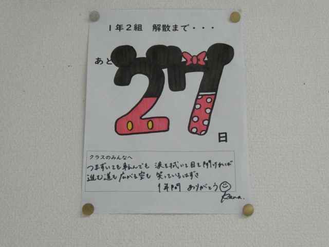 掲示物より 公開日 2026/02/26 更新日 2026/02/26 できごと 各クラスでも解散のときまでのカウントダウンが始まりました。廊下壁面はクラスや学年の雰囲気が醸し出される掲示物で彩られています。 いいね(0)