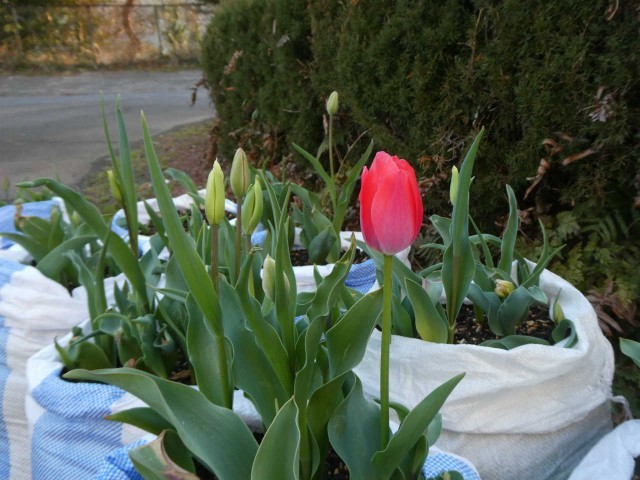 夕方になるとチューリップはがくを礼儀正しく閉じます。精密なセンサーと体内時計を備えているようです。人間も自然の流れに従って生きるのがいいのでしょう。箱根山に夕日が沈みます。3年生も山梨県から無事に帰着できました。一日、お疲れ様でした。