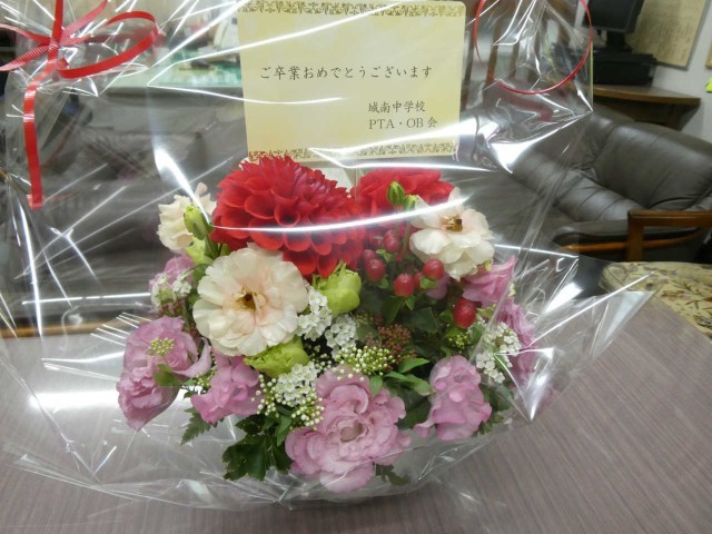 PTA・OB会様より、とてもキレイなお花をいただきました。毎年、ありがとうございます。