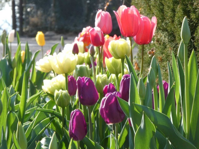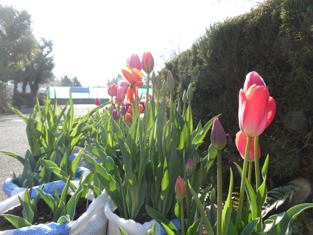 卒業の花道を美しく飾ってくれた技術科で栽培のチューリップ園。今朝も見る者の心を前向きにしてくれています。「チューリップたちへの恩返をしなくては」と思いました。