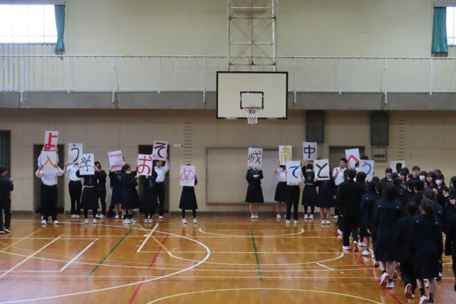 昨日は午前に2・3年生の始業式、午後に入学式が行われたため、今朝新入生47名が2・3年生と顔合わせしました。新入生代表の言葉が昨日に引き続き大変に立派な内容でした。