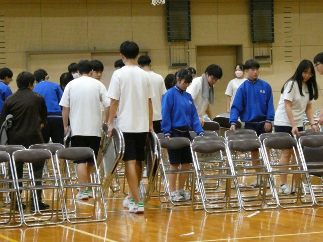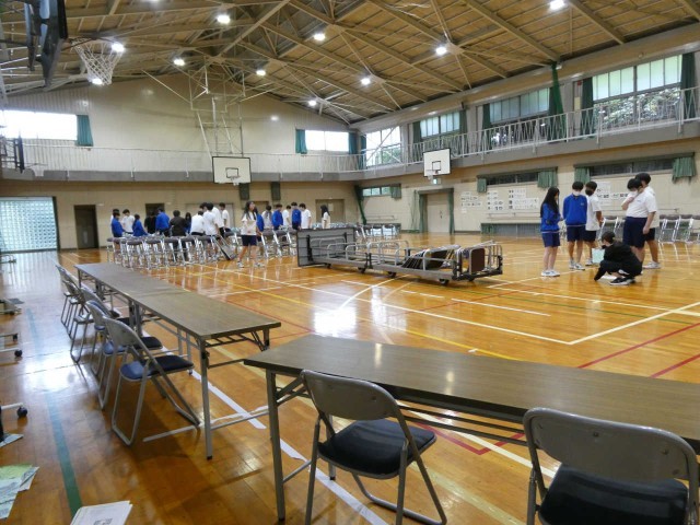 明日の合唱発表会に向けて3年生が体育館の会場準備をしてくれました。ありがとうございます。