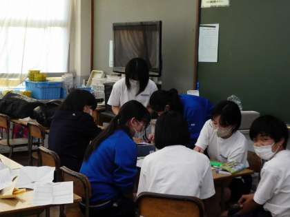 美術部の活動風景です。クリスマスに向けての取組が継続されています。プレゼントを作る人、サンドアートでサンタを作る人…、和気あいあいと楽しそうに製作中です。「サンタが美術室にやって来た!」感じです。